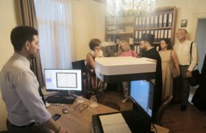 Στο πλαίσιο της ίδιας επίσκεψης, η αντιπροσωπεία του ΕΚΒΜΜ ξεναγήθηκε από τον πανοσιολογιώτατο αρχιμανδρίτη π.Καισάριο Χρόνη στον χώρο όπου βρίσκονται οι δύο μεγάλοι ψηφιοποιητές που δώρισε το ΕΚΒΜΜ στο Οικουμενικό Πατριαρχείο. Ο π.Καισάριος ενημέρωσε το ΔΣ και τη διευθύντρια ότι η δωρεά του ΕΚΒΜΜ είναι μεγάλης σημασίας καθώς παρέχει στο Οικουμενικό Πατριαρχείο τη δυνατότητα να ψηφιοποιεί τους κώδικες, τα παλαίτυπα και τα έγγραφα του πατριαρχικού αρχειοφυλακείου σε υψηλή ανάλυση.