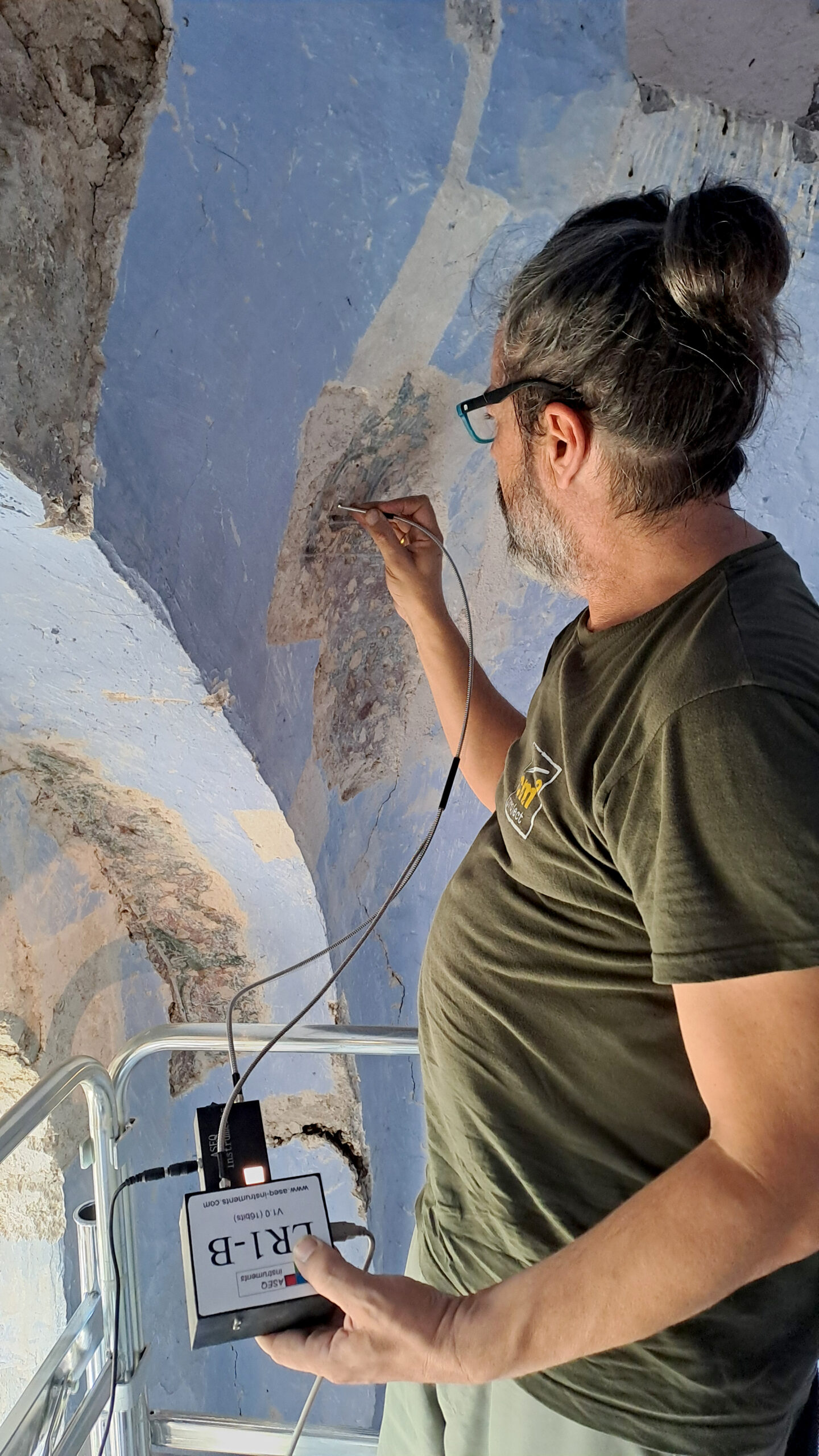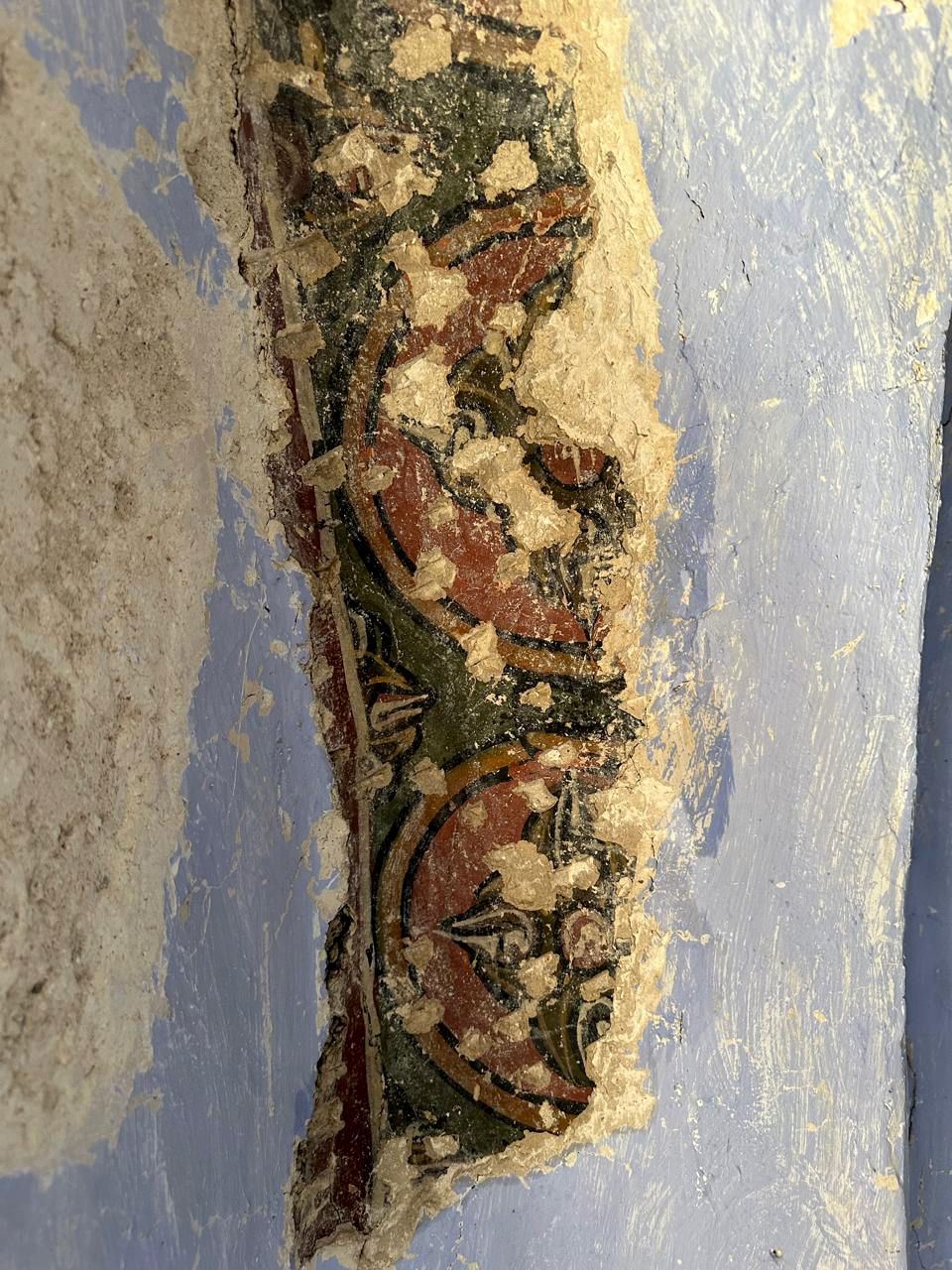 In September of the same year, a mission of specialized conservators of antiquities and works of art traveled to Albania (27/08–20/09/2024) and worked under the supervision of the Head of the Directorate for the Conservation of Ancient and Modern Monuments, Dr. M. Mertzani. During this period, the first phase of investigation and conservation works on the wall paintings of the katholikon of the Monastery of Saint Nicholas was completed. Investigative test cuts were carried out across the surfaces of the church up to a height of 8 meters, which could be safely reached using the available mobile scaffolding. A previously unknown wall-painting decoration was identified over a considerable area. Extensive interventions were also carried out, including the removal of later plaster and limewash layers, the definition of the boundaries of the painted areas, the consolidation of friable substrates, the re-adhesion of detached plaster layers, perimetric securing, surface desalination, and the consolidation of the powdering paint layer. Furthermore, non-destructive imaging and spectroscopic diagnostic and documentation methods were applied to determine the nature of the pigments belonging to different painting phases, producing particularly interesting results. Non-destructive analyses also documented the extensive presence of soluble salts (nitrates) on both the surface and within the structure of the wall paintings. The investigation works revealed wall-painting decoration over a large area, especially in the western and southern parts of the church, which had not collapsed in the past.